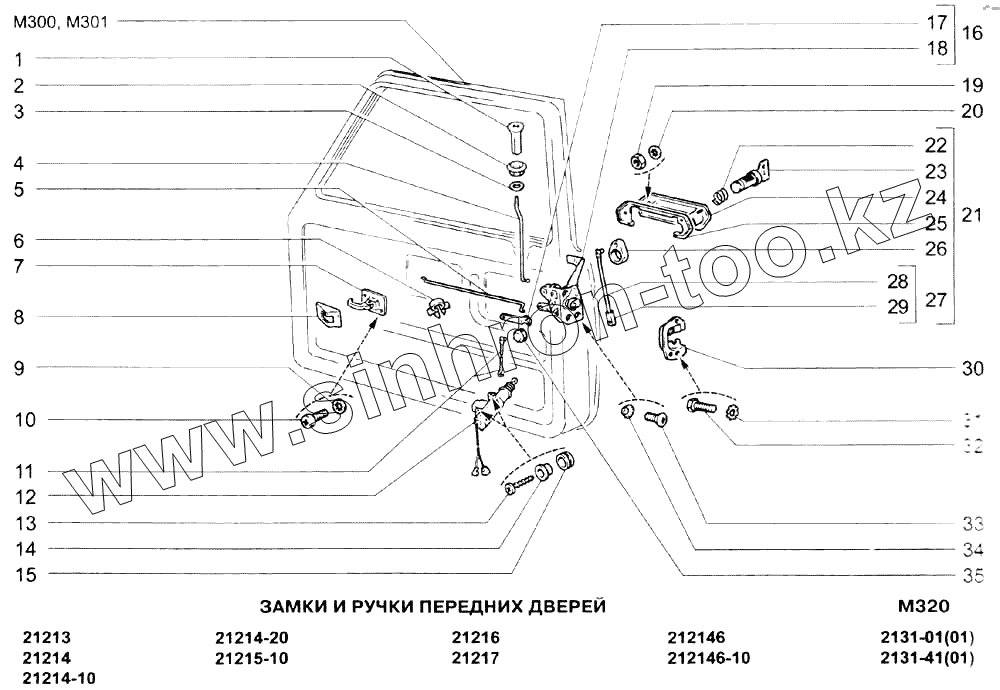 Каталог запасных частей к технике: ВАЗ-21213-214i (NIVA). Замки и ручки передних дверей