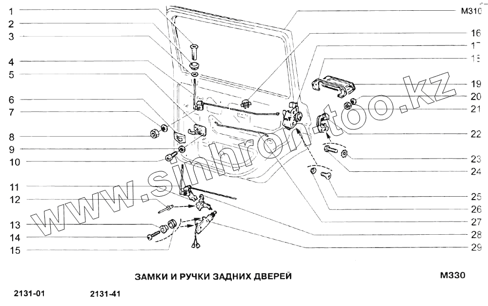 Каталог запасных частей к технике: ВАЗ-21213-214i (NIVA). Замки и ручки задних дверей