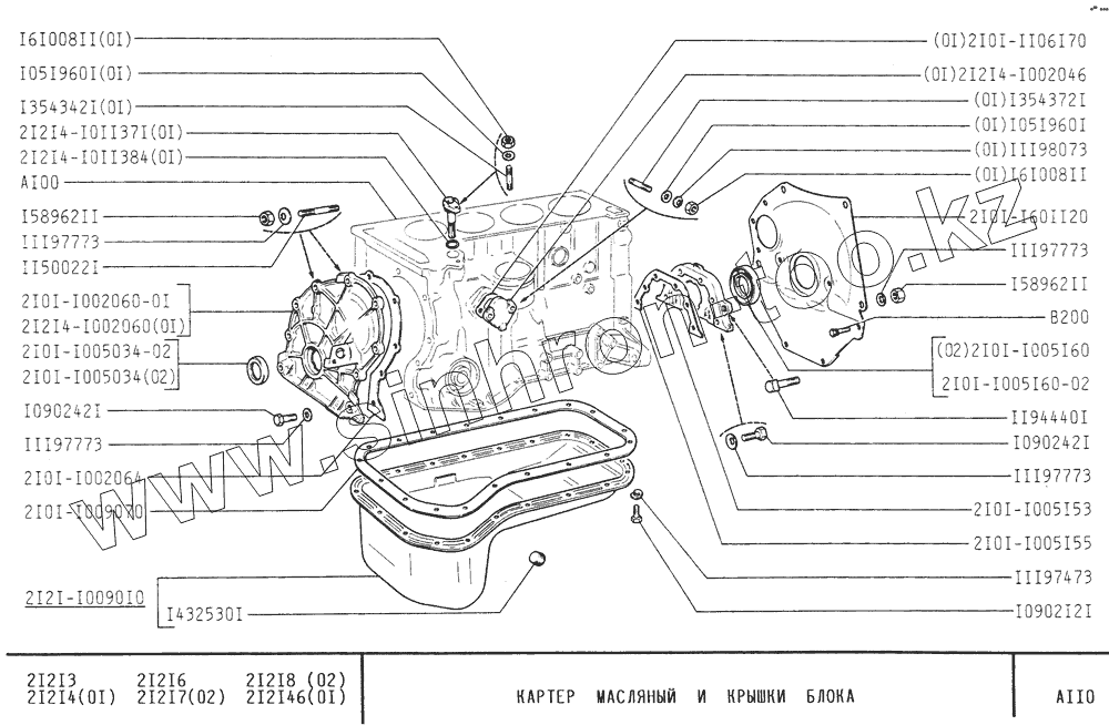 Каталог запасных частей к технике: ВАЗ-21213 (NIVA). Картер масляный и крышки блока