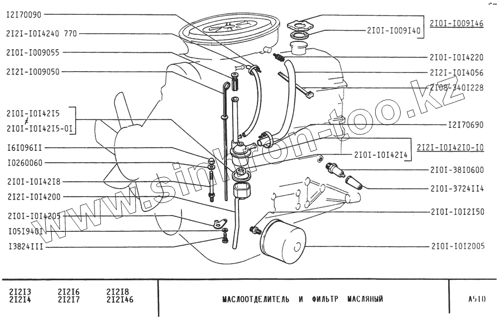 Каталог запасных частей к технике: ВАЗ-21213 (NIVA). Маслоотделитель и фильтр масляный