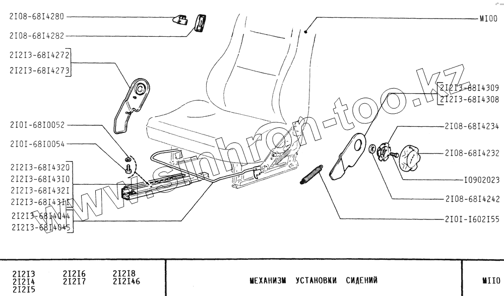 Каталог запасных частей к технике: ВАЗ-21213 (NIVA). Механизм установки сидений