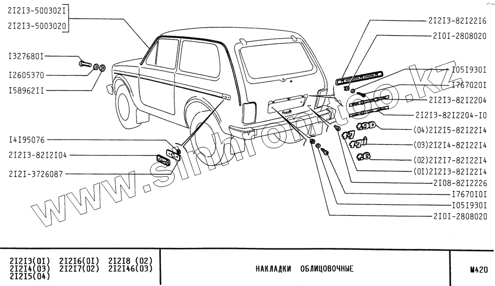 Каталог запасных частей к технике: ВАЗ-21213 (NIVA). Накладки облицовочные