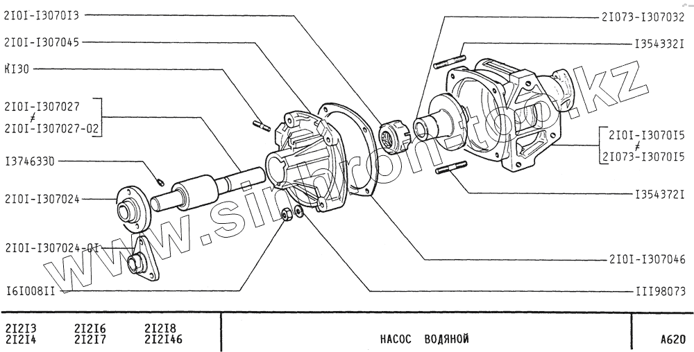Каталог запасных частей к технике: ВАЗ-21213 (NIVA). Насос водяной
