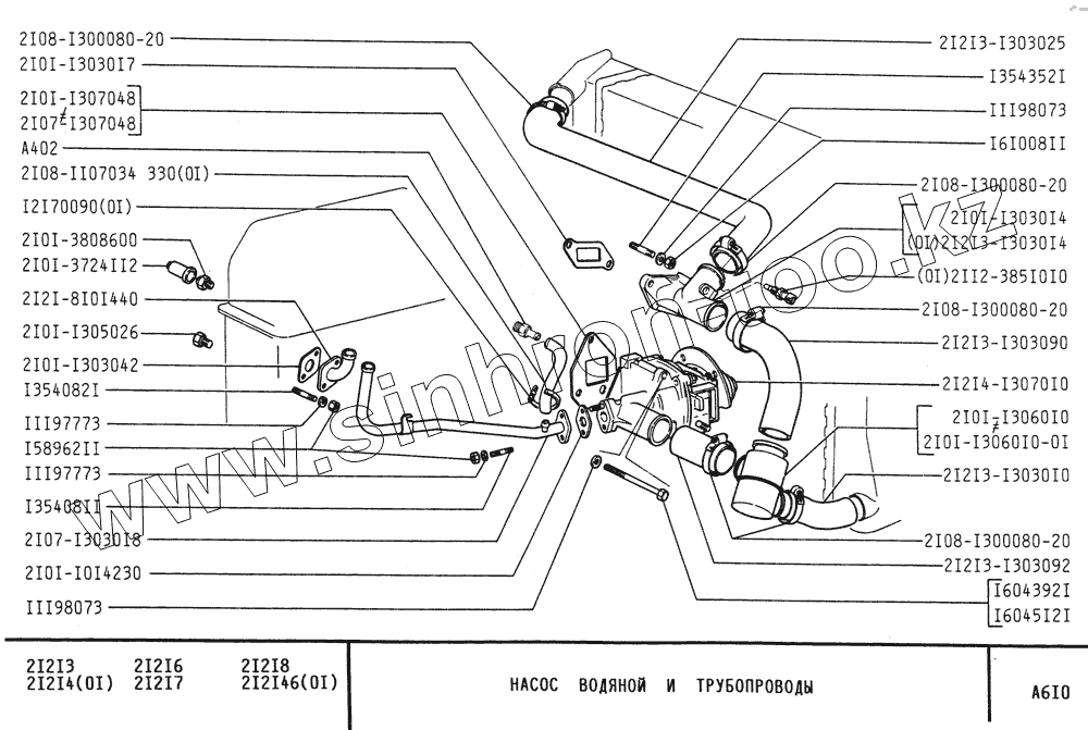 Каталог запасных частей к технике: ВАЗ-21213 (NIVA). Насос водяной и трубопроводы