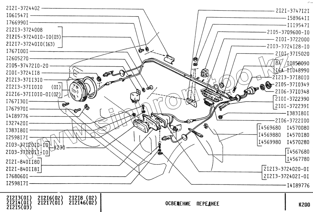 Каталог запасных частей к технике: ВАЗ-21213 (NIVA). Освещение переднее