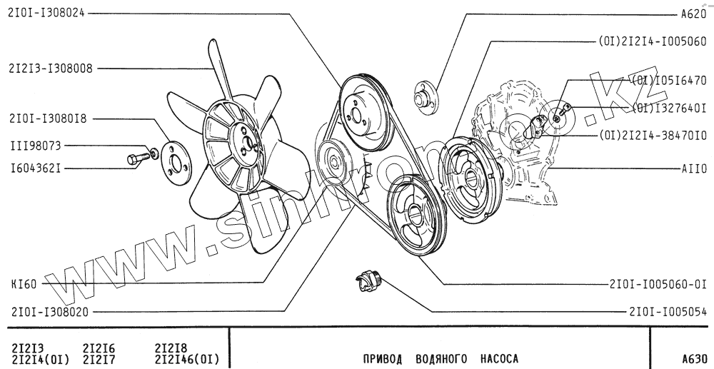 Каталог запасных частей к технике: ВАЗ-21213 (NIVA). Привод водяного насоса