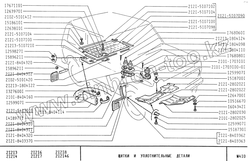 Каталог запасных частей к технике: ВАЗ-21213 (NIVA). Щитки и уплотнительные детали