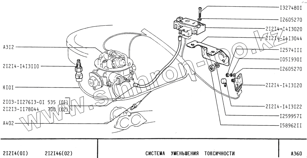 Каталог запасных частей к технике: ВАЗ-21213 (NIVA). Система уменьшения токсичности