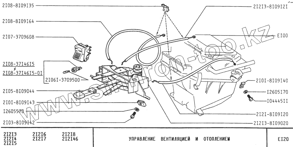 Каталог запасных частей к технике: ВАЗ-21213 (NIVA). Управление вентиляцией и отоплением