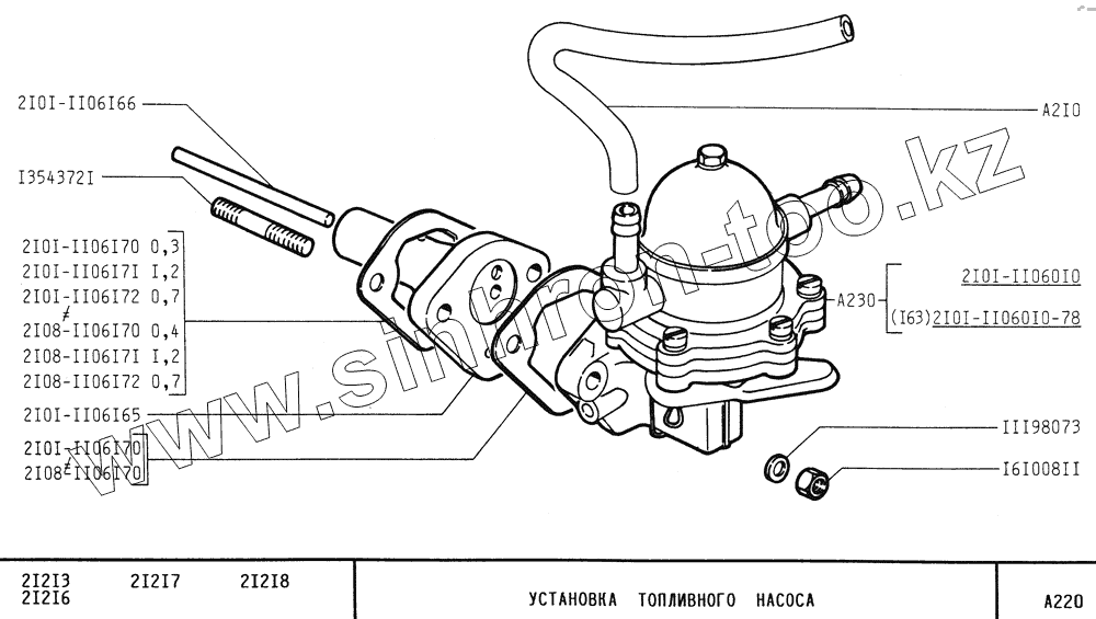 Каталог запасных частей к технике: ВАЗ-21213 (NIVA). Установка топливного насоса