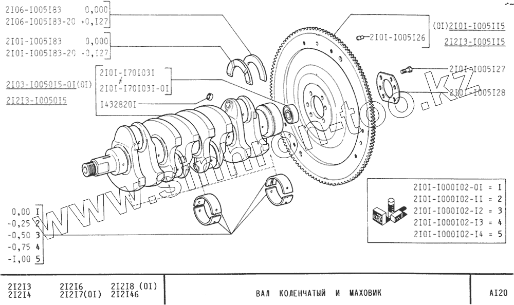 Каталог запасных частей к технике: ВАЗ-21213 (NIVA). Вал коленчатый и маховик