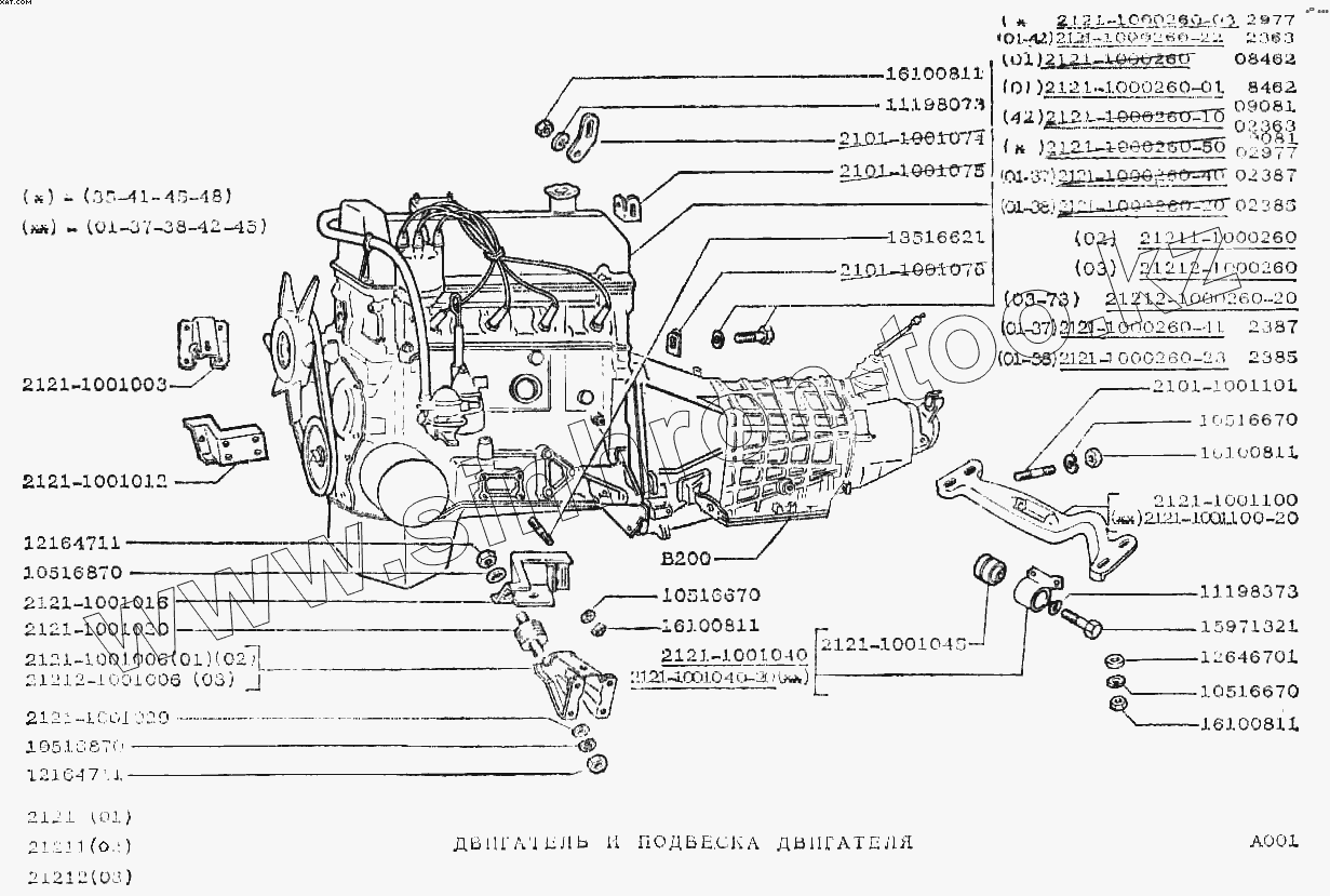 Каталог запасных частей к технике: ВАЗ-2121 (NIVA). Двигатель и подвеска двигателя