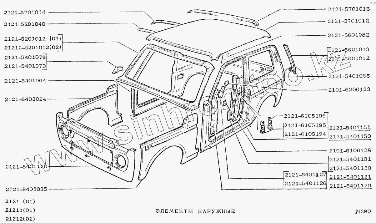 Каталог запасных частей к технике: ВАЗ-2121 (NIVA). Элементы наружные