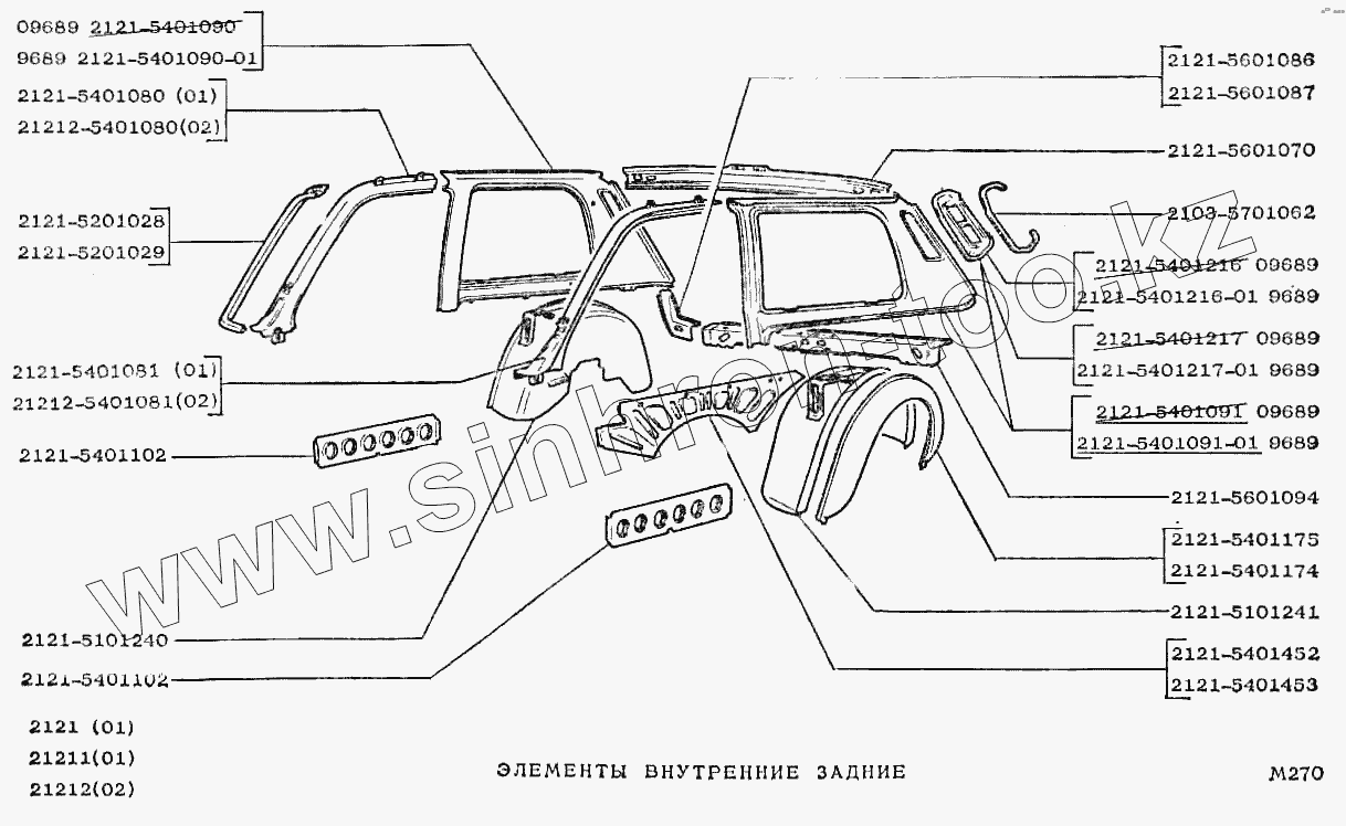 Каталог запасных частей к технике: ВАЗ-2121 (NIVA). Элементы внутренние задние