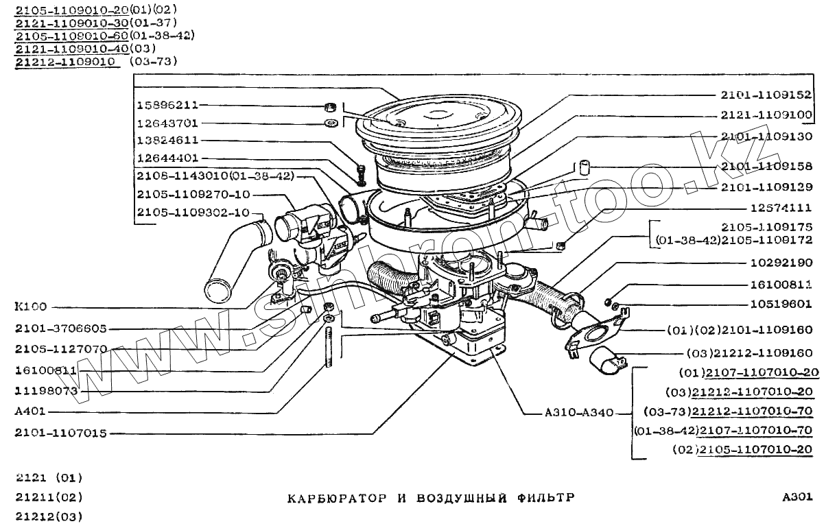 Каталог запасных частей к технике: ВАЗ-2121 (NIVA). Карбюратор и воздушный фильтр
