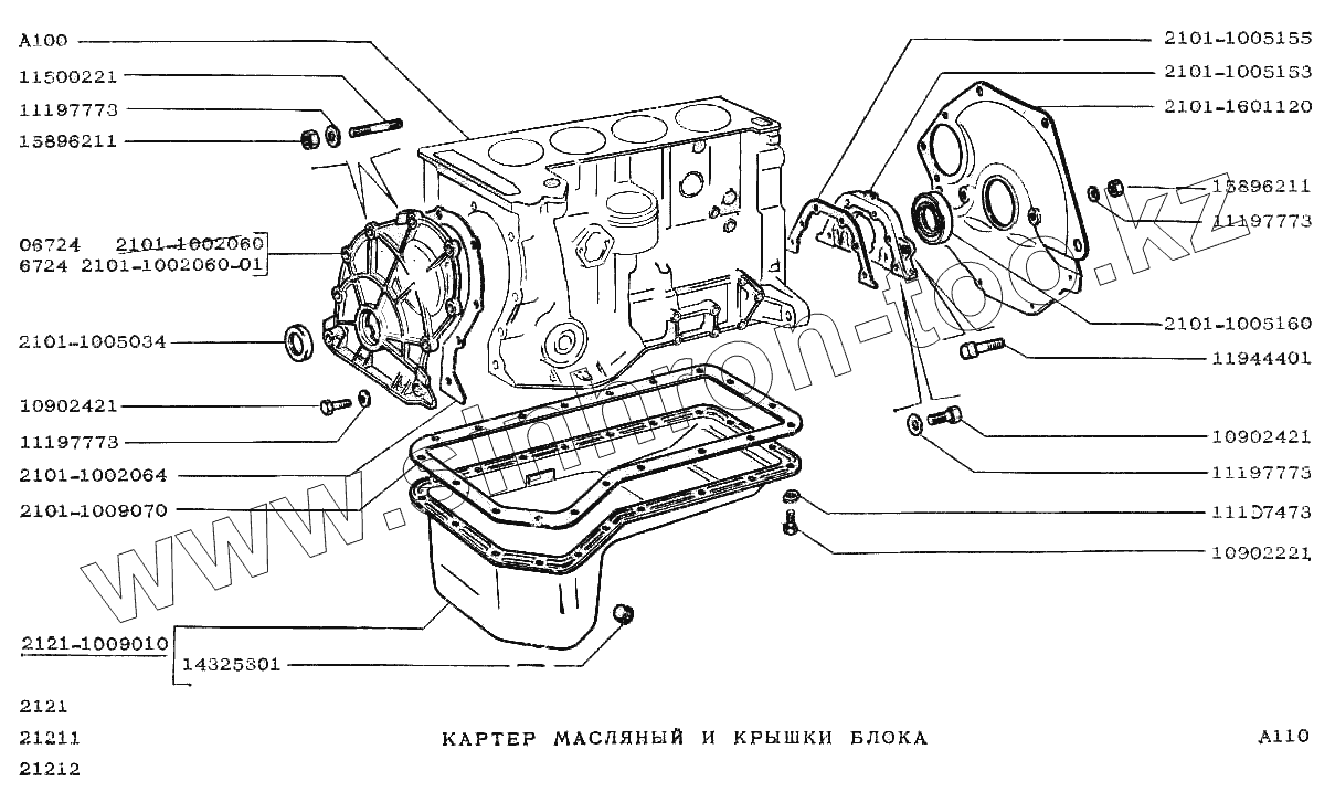 Каталог запасных частей к технике: ВАЗ-2121 (NIVA). Картер масляный и крышки блока