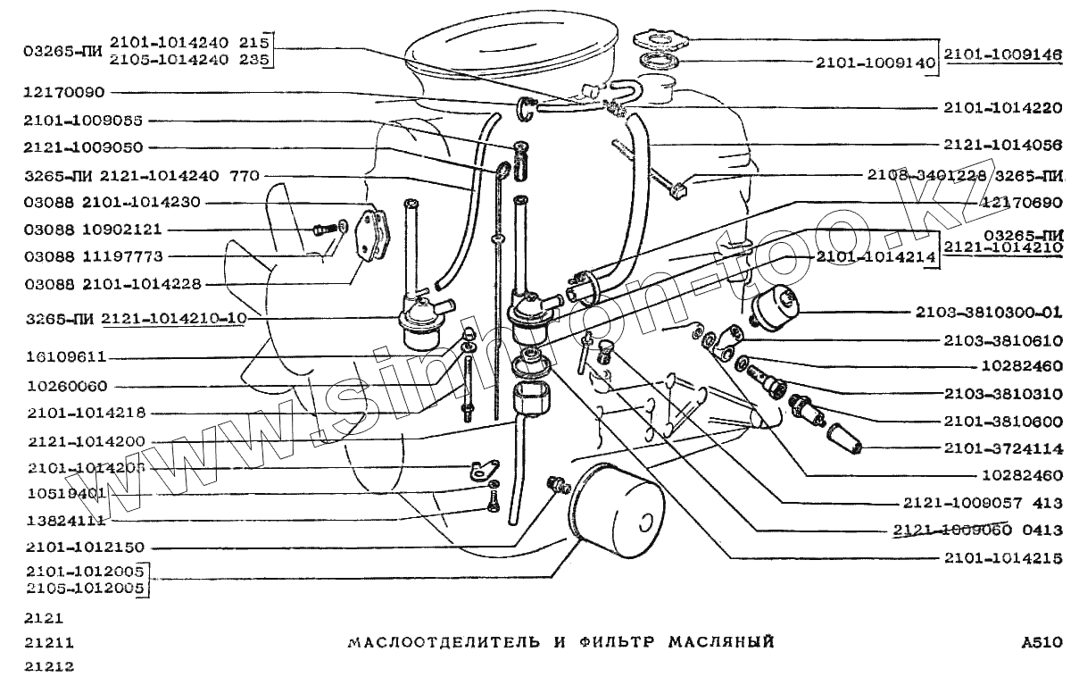 Каталог запасных частей к технике: ВАЗ-2121 (NIVA). Маслоотделитель и фильтр масляный