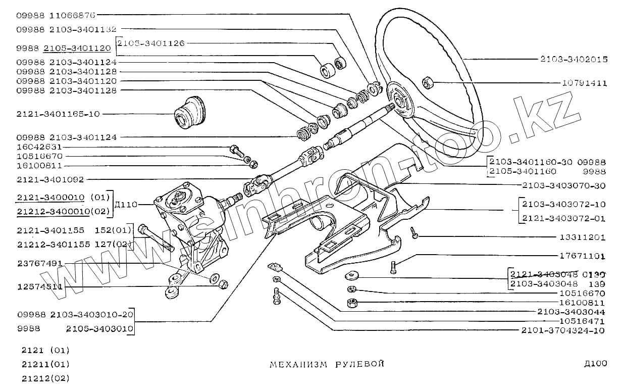 Каталог запасных частей к технике: ВАЗ-2121 (NIVA). Механизм рулевой