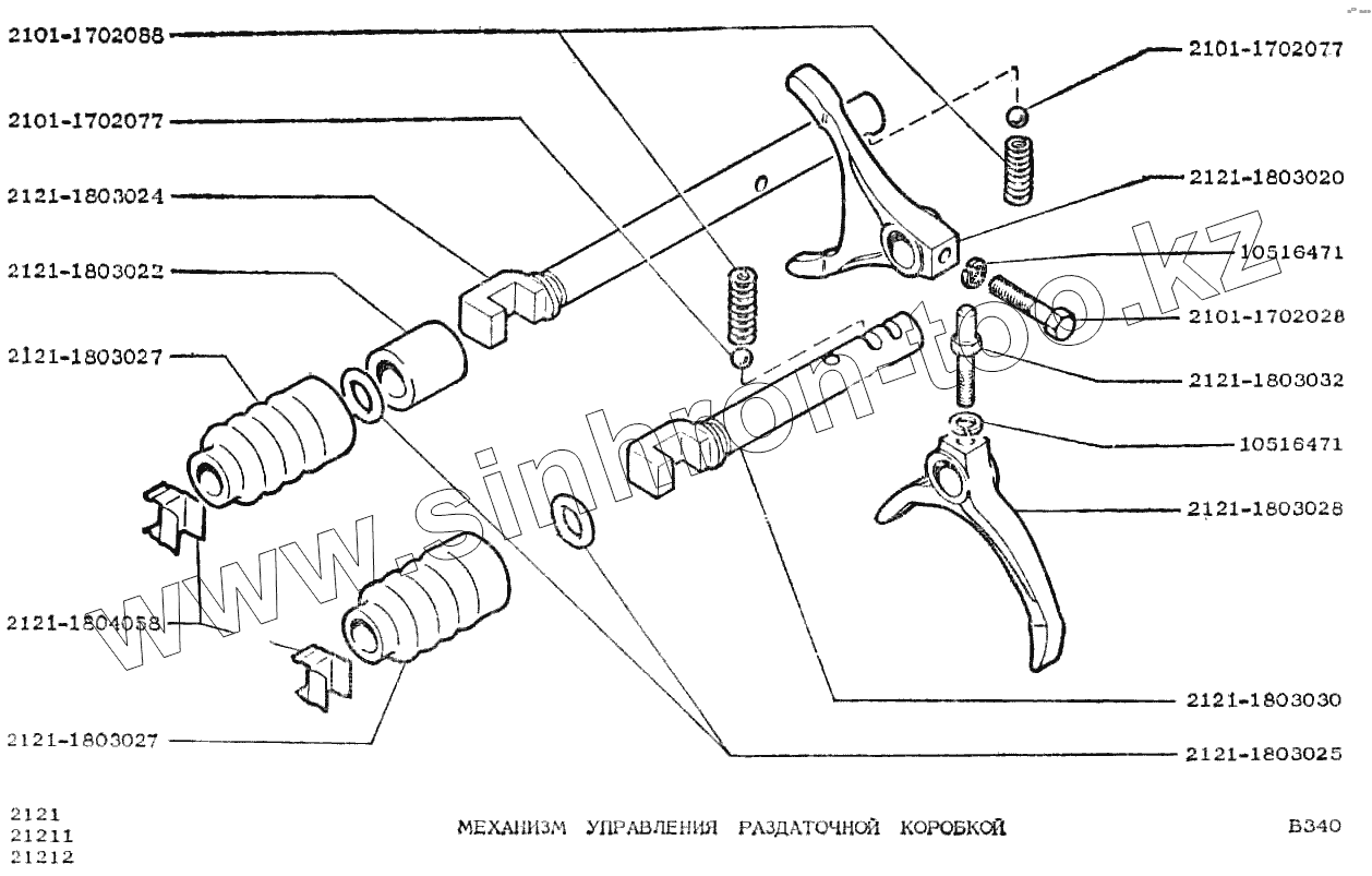Каталог запасных частей к технике: ВАЗ-2121 (NIVA). Механизм управления раздаточной коробкой