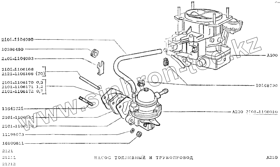 Каталог запасных частей к технике: ВАЗ-2121 (NIVA). Насос топливный и трубопровод
