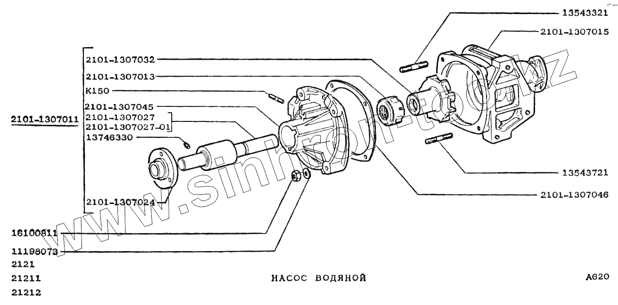 Каталог запасных частей к технике: ВАЗ-2121 (NIVA). Насос водяной