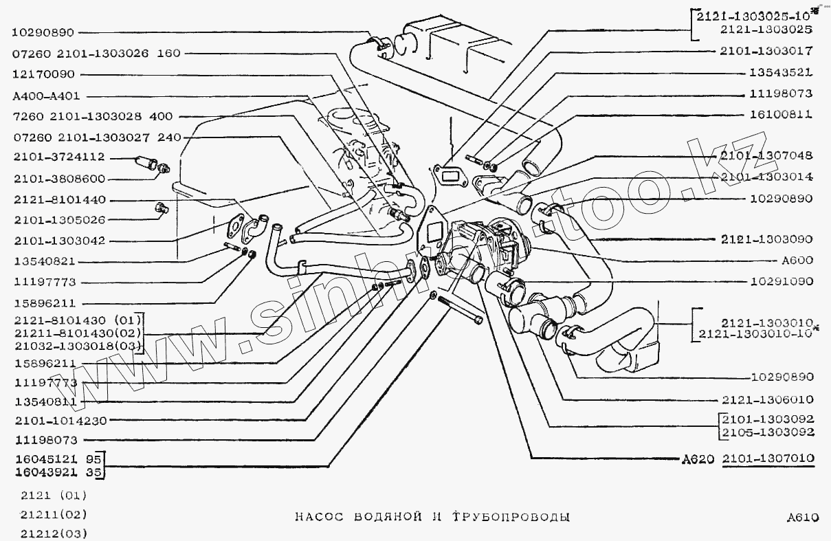 Каталог запасных частей к технике: ВАЗ-2121 (NIVA). Насос водяной и трубопроводы