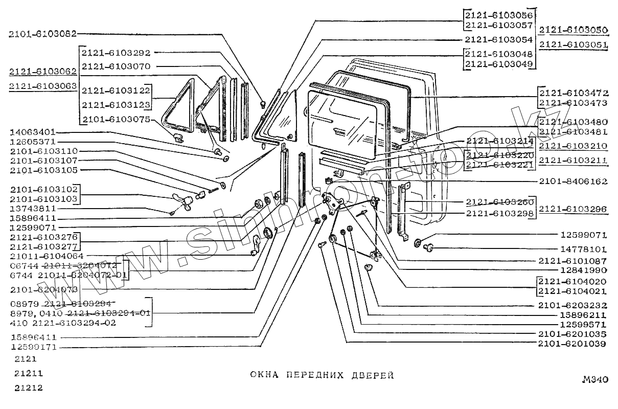 Каталог запасных частей к технике: ВАЗ-2121 (NIVA). Окна передних дверей