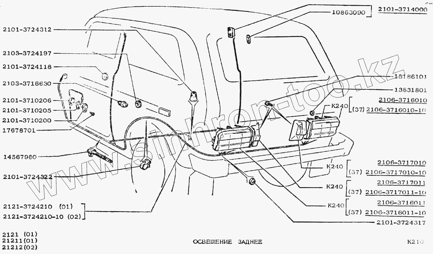 Каталог запасных частей к технике: ВАЗ-2121 (NIVA). Освещение заднее