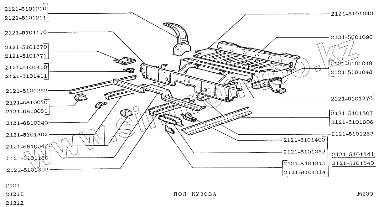 Каталог запасных частей к технике: ВАЗ-2121 (NIVA). Пол кузова