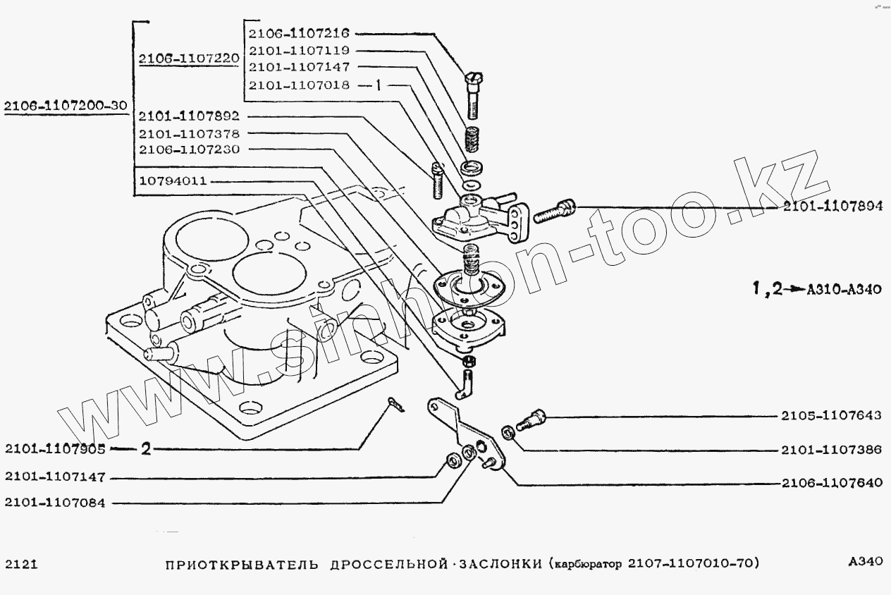 Каталог запасных частей к технике: ВАЗ-2121 (NIVA). Приоткрыватель дроссельной заслонки