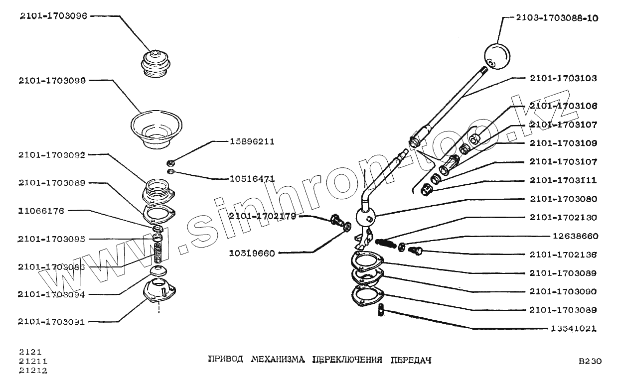 Каталог запасных частей к технике: ВАЗ-2121 (NIVA). Привод механизма переключения передач