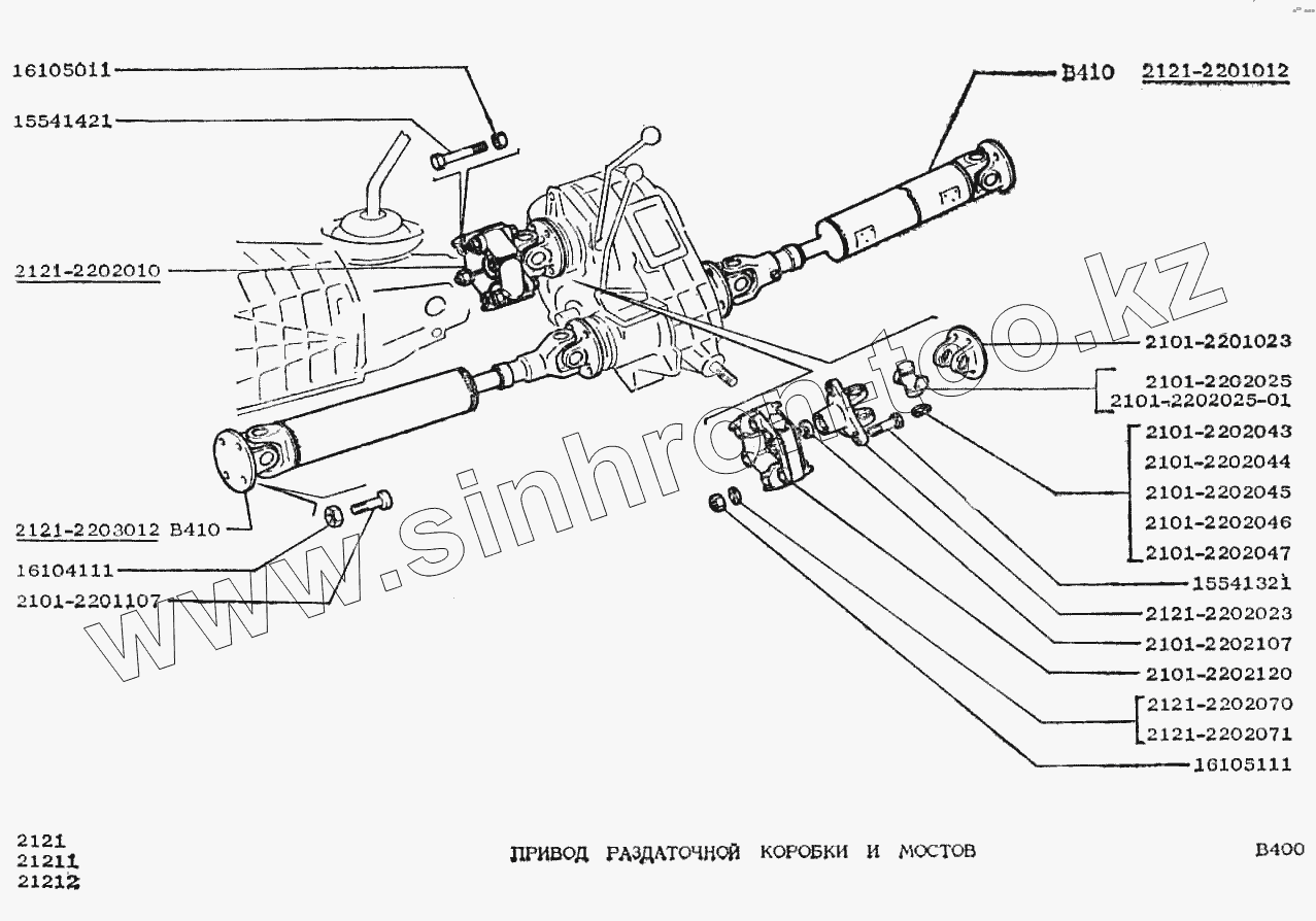 Каталог запасных частей к технике: ВАЗ-2121 (NIVA). Привод раздаточной коробки и мостов