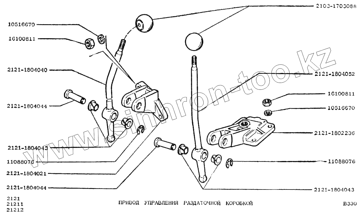Каталог запасных частей к технике: ВАЗ-2121 (NIVA). Привод управления раздаточной коробкой