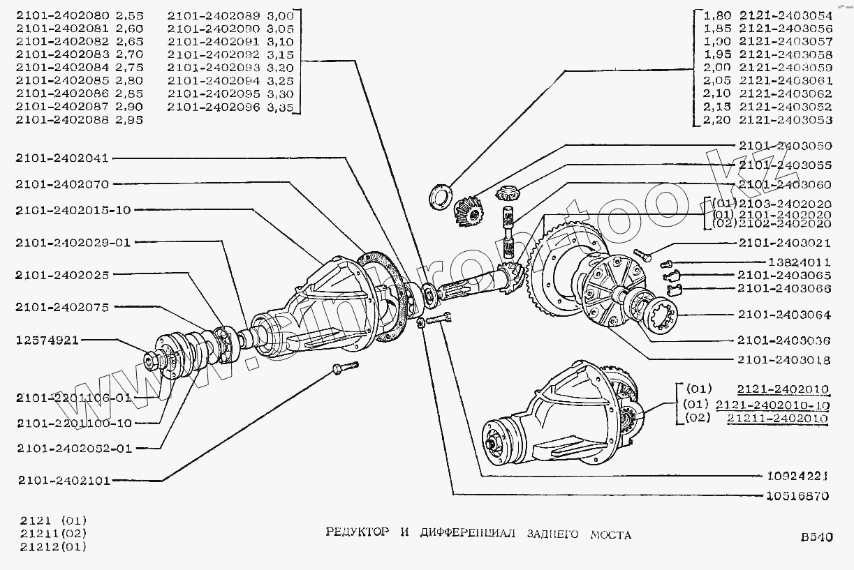 Каталог запасных частей к технике: ВАЗ-2121 (NIVA). Редуктор и дифференциал заднего моста