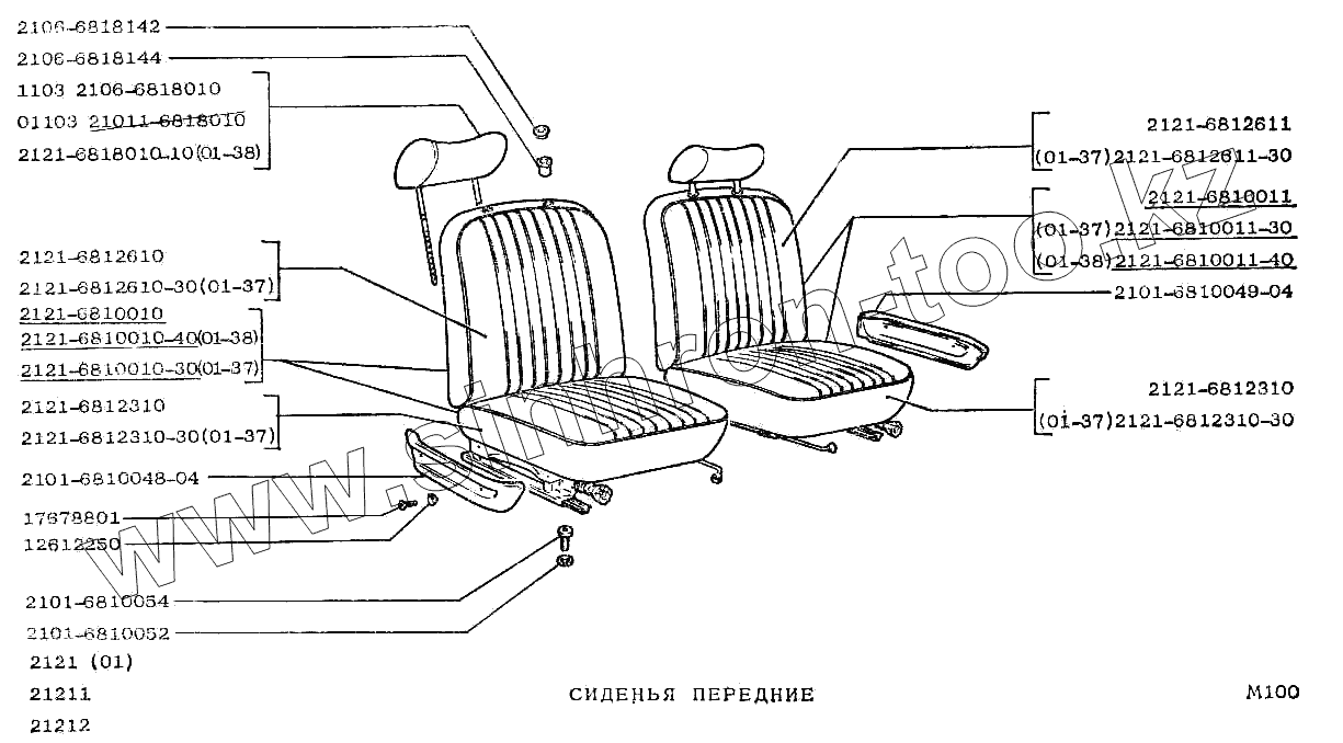 Каталог запасных частей к технике: ВАЗ-2121 (NIVA). Сиденья передние