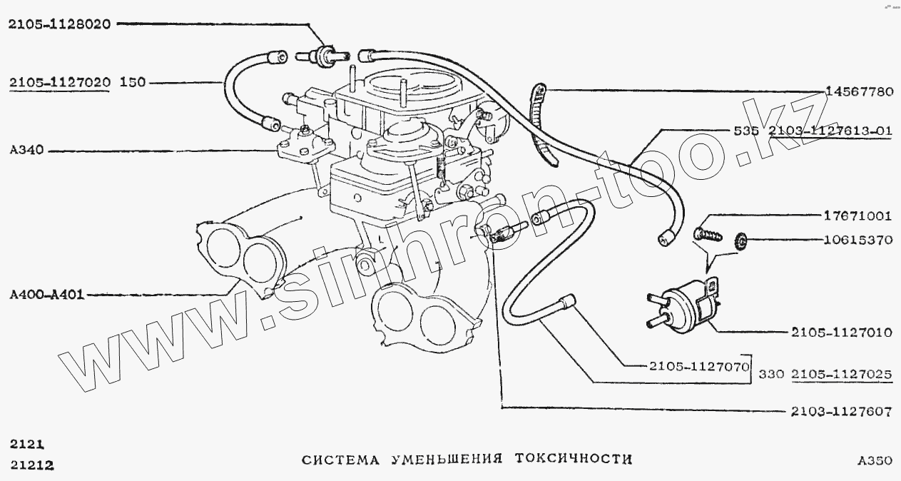 Каталог запасных частей к технике: ВАЗ-2121 (NIVA). Система уменьшения токсичности