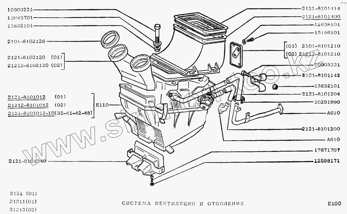 Каталог запасных частей к технике: ВАЗ-2121 (NIVA). Система вентиляции и отопления