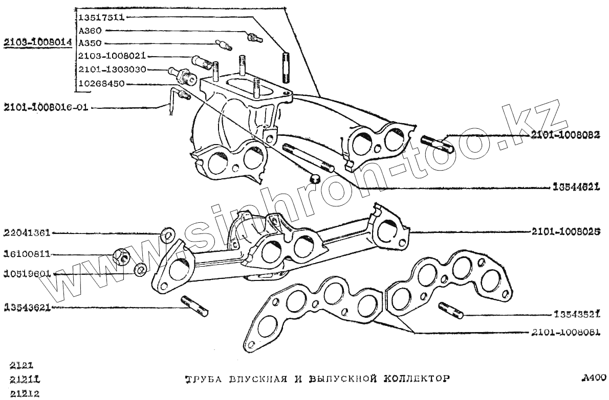 Каталог запасных частей к технике: ВАЗ-2121 (NIVA). Труба впускная и выпускной коллектор