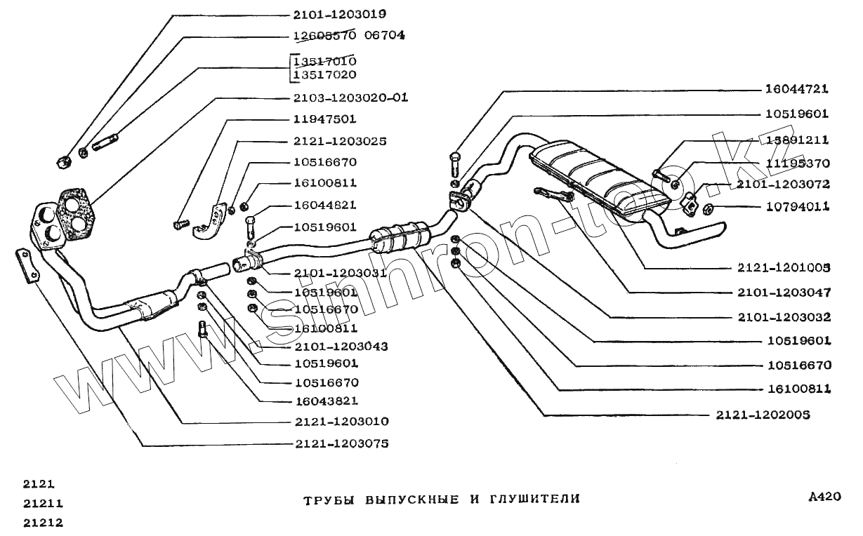 Каталог запасных частей к технике: ВАЗ-2121 (NIVA). Трубы выпускные и глушители