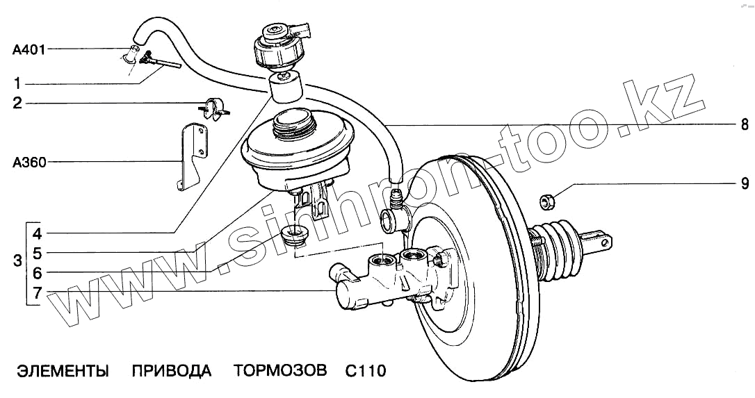 Каталог запасных частей к технике: ВАЗ-2123. Элементы привода тормозов