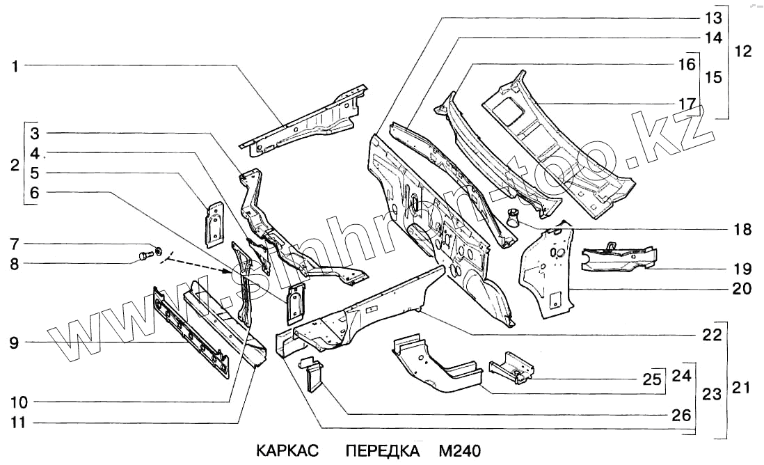 Каталог запасных частей к технике: ВАЗ-2123. Каркас передка