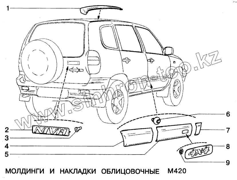 Каталог запасных частей к технике: ВАЗ-2123. Молдинги и накладки облицовочные