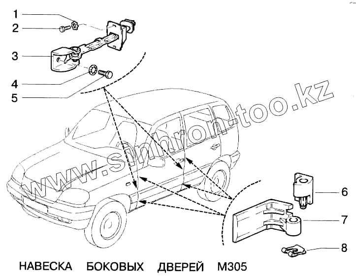 Каталог запасных частей к технике: ВАЗ-2123. Навеска боковых дверей