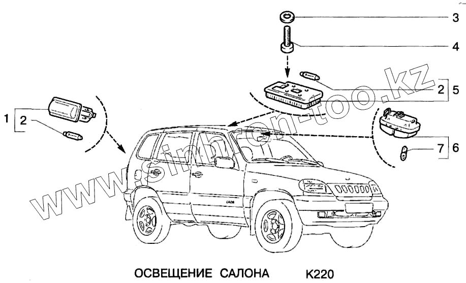 Каталог запасных частей к технике: ВАЗ-2123. Освещение салона