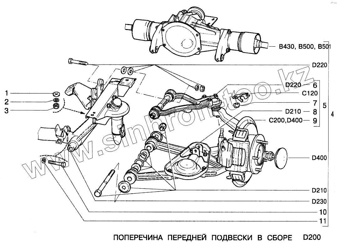 Каталог запасных частей к технике: ВАЗ-2123. Поперечина передней подвески в сборе