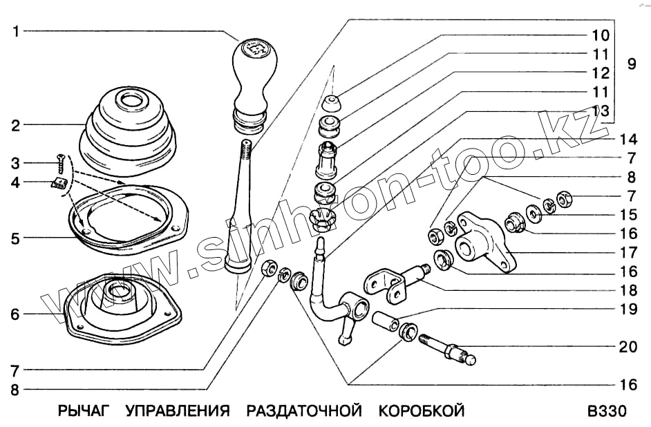 Каталог запасных частей к технике: ВАЗ-2123. Рычаг управления раздаточной коробкой