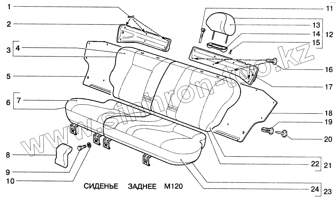 Каталог запасных частей к технике: ВАЗ-2123. Сиденье заднее