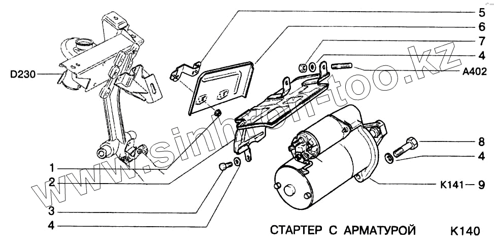 Каталог запасных частей к технике: ВАЗ-2123. Стартер с арматурой