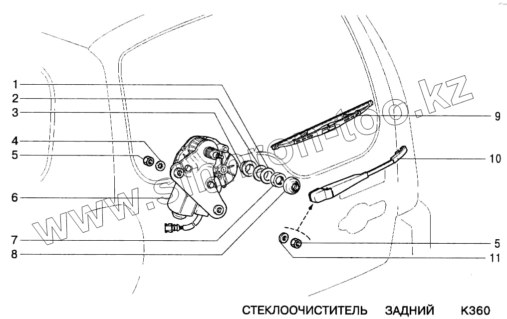 Каталог запасных частей к технике: ВАЗ-2123. Стеклоочиститель задний