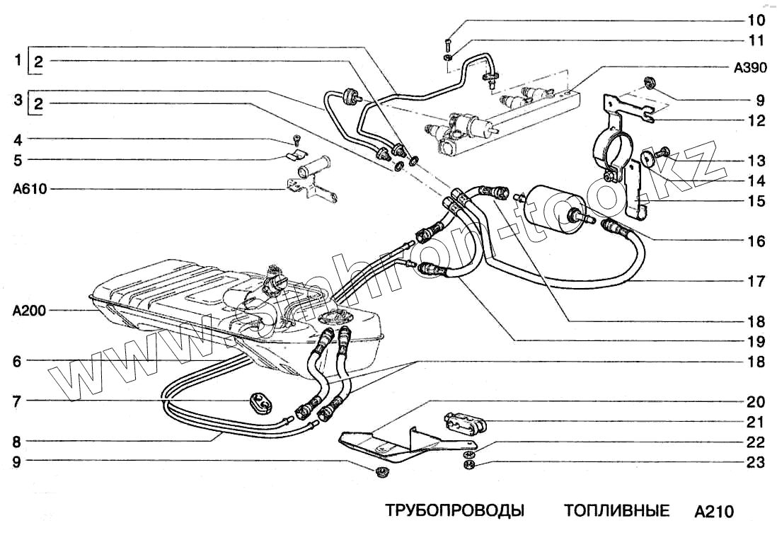 Каталог запасных частей к технике: ВАЗ-2123. Трубопроводы топливные